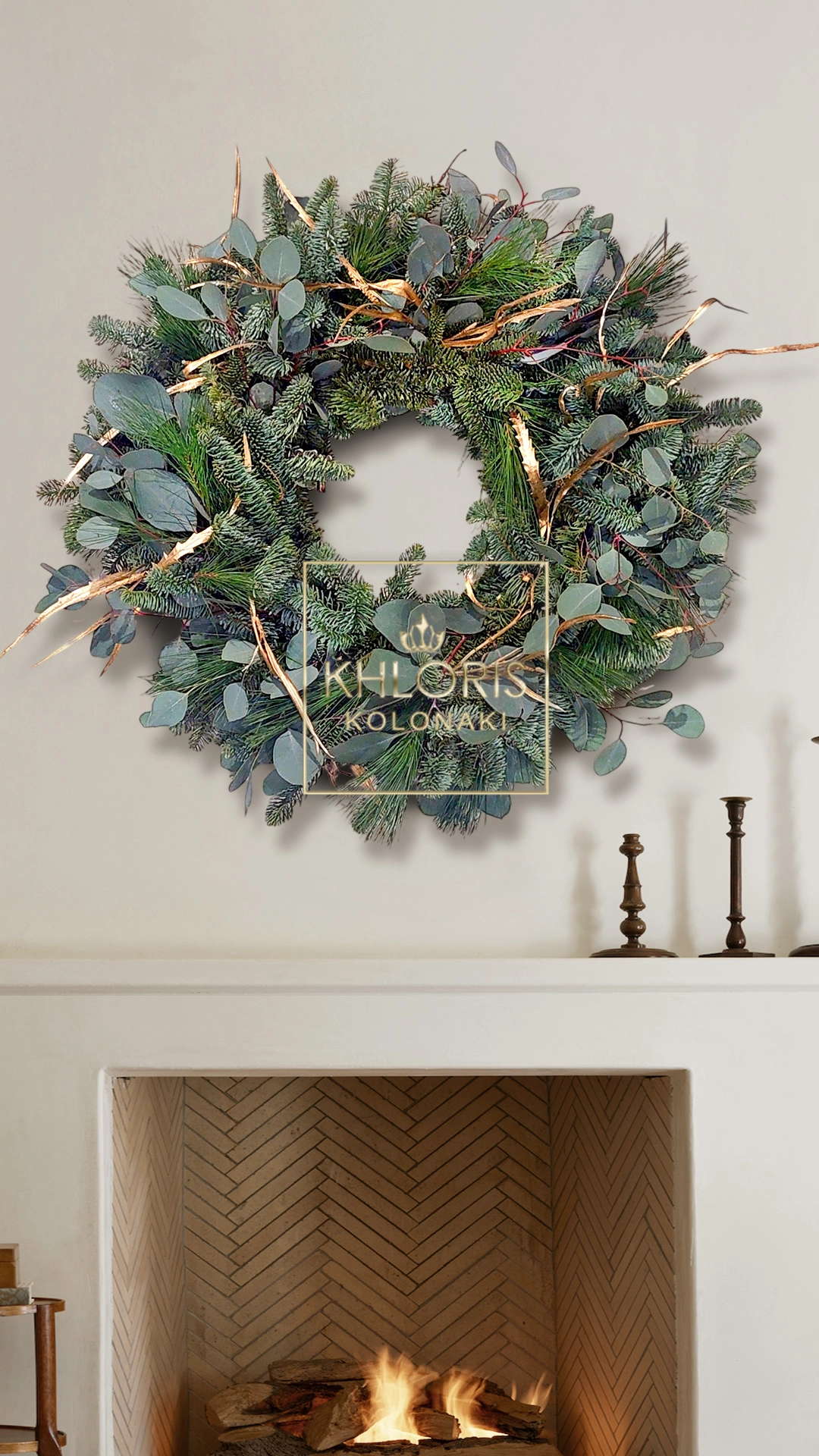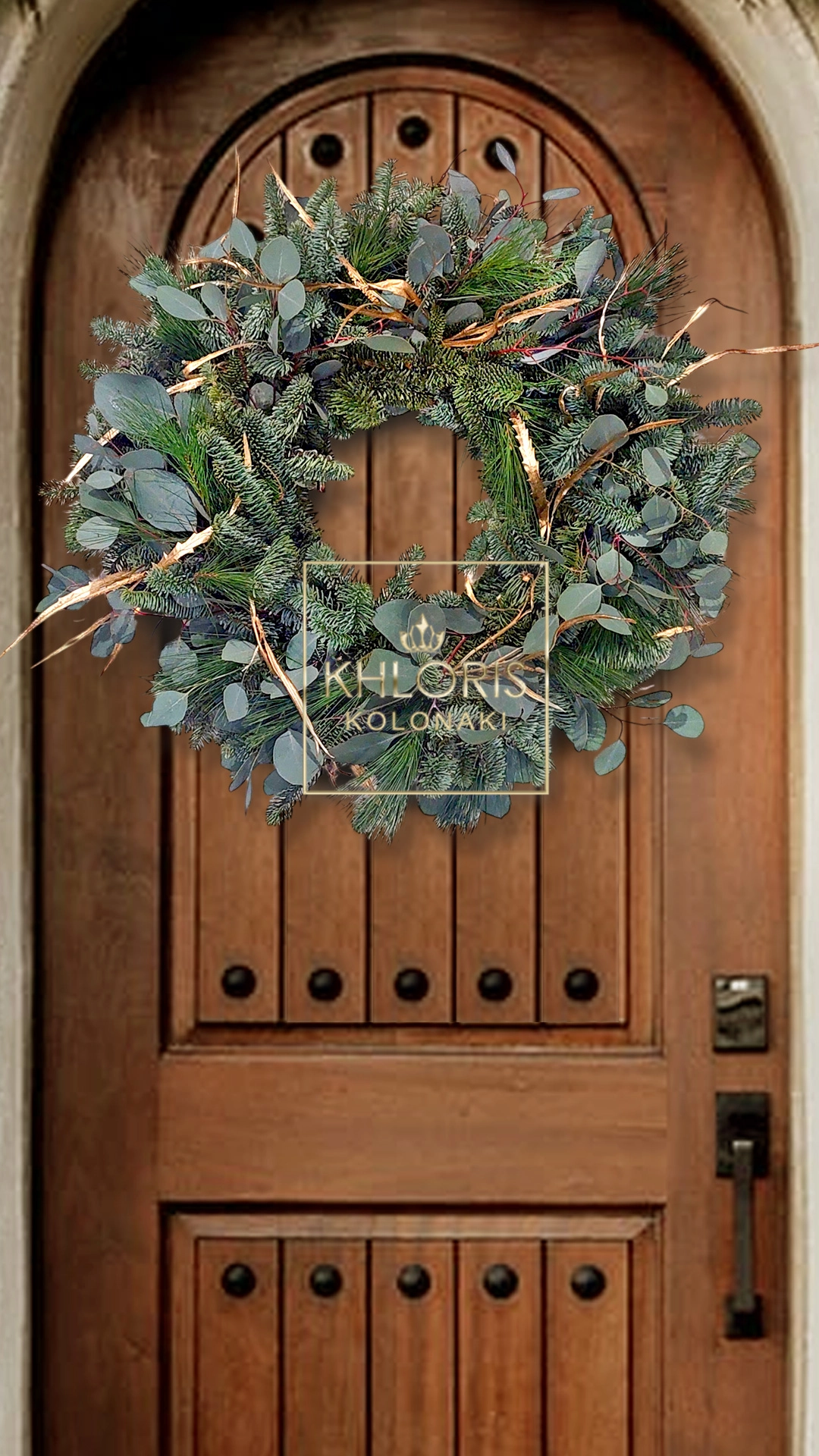 Χριστουγεννιάτικο στεφάνι Gold Grevilea. Χριστουγεννιάτικο στεφάνι αληθινό, με Ευκάλυπτο, Πεύκο, έλατο, gold grevilea. Διάσταση: 60 εκ. κατά προσέγγιση.