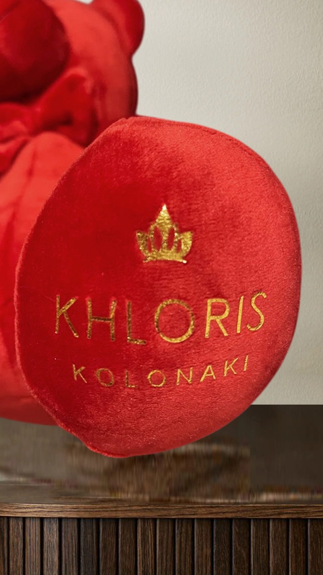Love Teddy bear – Αρκουδάκι Κόκκινο με βελούδινη υφή και φέρει το λογότυπο KHLORIS KOLONAKI. Διάσταση: 32 εκ. Αποστέλλεται σε τσάντα δώρου.